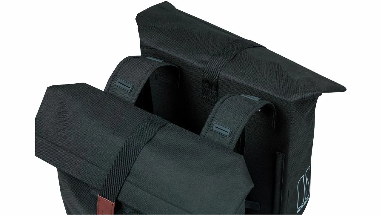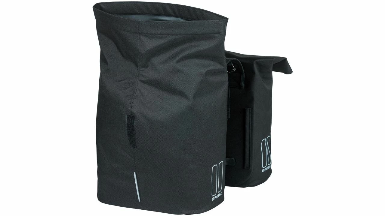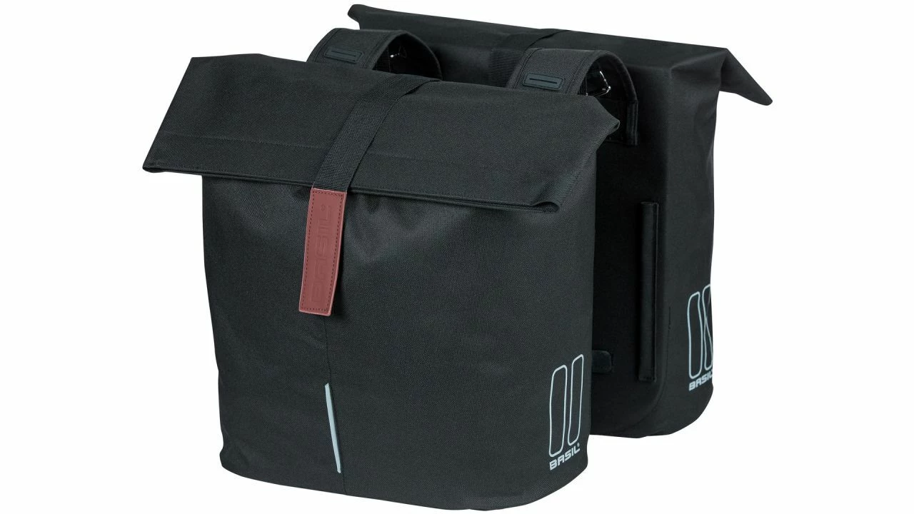 Ob auf dem Weg zur Arbeit, zu Freunden oder in die City: Die BASIL City Double Bag ist der optimale Begleiter. Die 28 Liter fassende Doppeltasche lässt sich dank des Rollverschlusses auf 32 Liter erweitern, sodass auch spontan ein größerer Einkauf sicher transportiert werden kann. <br><br>Die Tasche ist aus wasserabweisendem Polyester gefertigt und mit einem Klettverschluss ausgestattet, der den Rollverschluss verschließt. Für die leichte Montage am Rad ist sie mit dem Universal Bridge System ausgestattet. <br><br>Die Tasche kann entweder mit den vormontierten Riemen am Gepäckträger befestigt werden, mit dem BASIL DBS-System oder Adapterplatten von MIK und Racktime. Reflektierende Elemente machen einen sichtbarer im Straßenverkehr.