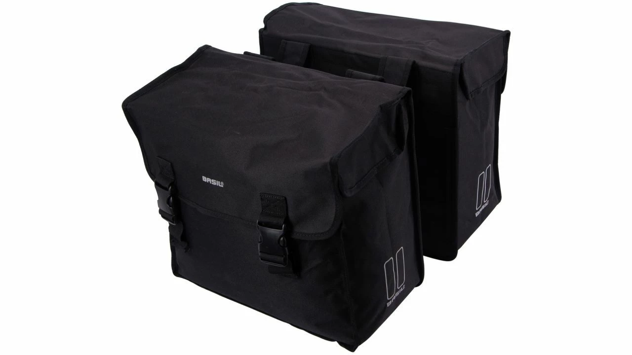 Ihr großzügiges Volumen von 52 l (2 x 26 l) ist überragend: Bei der Mara 3XL von BASIL handelt es sich um eine moderne und stilvolle Fahrradtasche, die sich leicht am Gepäckträger eines Damen- oder Herrenfahrrads befestigen lässt.<br><br>Die Fahrradtasche bietet sich für viele Zwecke an. Dank ihres überraschend großen Inhalts von 52 l und ihrer ausgezeichneten Qualität ist die Mara 3XL ideal fürs Einkaufen oder eine lange Radtour. In der Tasche lassen sich jede Menge Einkäufe verstauen oder leere Flaschen zur Pfandrückgabe mitnehmen. <br>Sie besteht aus wasserabweisendem 600D Polyester und ist somit spritzwasserdicht.<br><br>Weiterhin hat die Fahrradtasche vorne und hinten doppelte Reflektorstreifen. Hiermit ist man auch in Dunkelheit während einer kurzen oder langen Fahrt gut sichtbar. Die Mara 3XL fällt aufgrund ihrer vorgefertigten und abgesteppten Aussparungen für Gepäckträger-Spanngurte, ihres biegsamen Materials und ihrer praktischen Schnallen auf. <br>Wer eine hochwertige, doppelte Fahrradtasche sucht, ist bei der BASIL Mara 3XL genau richtig.
