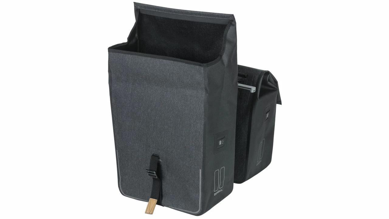 Unbeständiges Wetter und Streckenabschnitte querfeldein prägen deine nächste Tour? Geh lieber auf Nummer sicher mit der Urban Dry MIK Doppeltasche von BASIL. Da die Tasche aus hochwertigem, wasserdichtem Tarpaulin gefertigt ist, können ihr Wind und Wetter nichts anhaben. Selbst dann nicht, wenn es wie aus Eimern schüttet. <br><br>Das Material ist bekannt für seine Robustheit. Die Verschweißten Nähte machen die Doppeltasche extra wasserdicht. Nicht zuletzt aber überzeugt sie mit einer Größe von geräumigen 50 Litern. <br><br>Für maximale Sicherheit im Straßenverkehr sind an allen Seiten Reflektoren angebracht. Außerdem eine Schlinge, an der du eine extra LED-Beleuchtung hängen kannst. Dank der vormontierten Adapterplatte lässt sich die Tasche einfach an einem MIK-Gepäckträger befestigen.