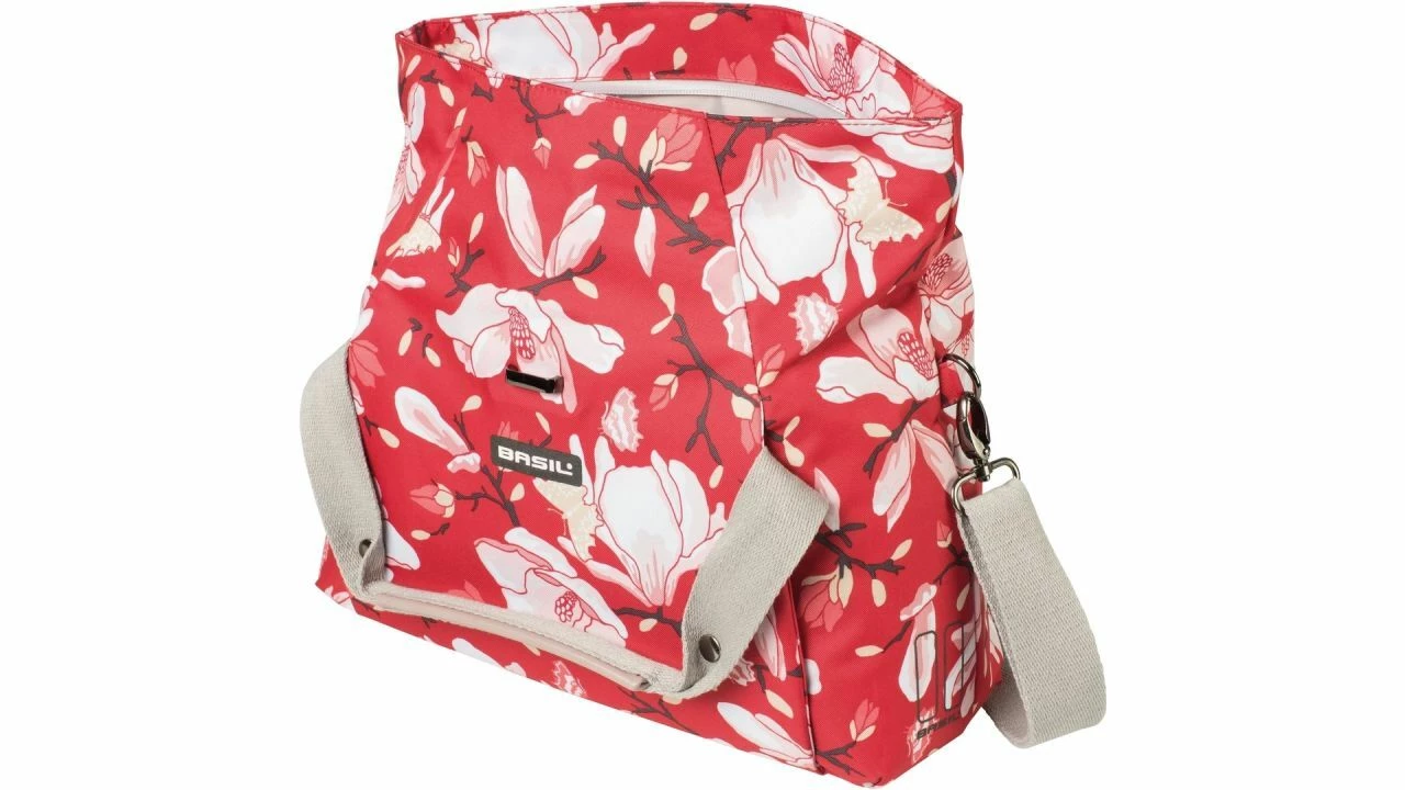 Bei der Lenkertasche Magnolia von BASIL handelt es sich um ein sehr nützliches Fahrrad-Accessoire, das sich leicht am Lenker eines Damenfahrrads befestigen lässt. Die auffällige Tasche ist aus Polyester gefertigt, verfügt über eine stabile Innenfütterung und ist vollständig wasserdicht.<br><br>Die Lenkertasche hat ein Volumen von 7 l und ist ungeheuer praktisch für die Aufbewahrung von diversen Fahrradsachen oder anderen Gegenständen. So lässt sich darin zum Beispiel prima Ihr Portemonnaie oder eine Fahrradkarte verstauen.<br>Falls Sie häufiger mit dem Fahrrad unterwegs sind, bietet sich diese Lenkertasche sehr gut an. Sie ist kompakt, bietet jedoch ausreichend Platz für all Ihre wichtigsten Dinge. Somit ist es nicht mehr nötig, mit einer Handtasche um Ihre Schultern Rad zu fahren. <br><br>Die Tasche lässt sich mithilfe eines Faltverschlusses inklusive Reißverschluss schließen. Weiterhin verfügt die Tasche über ein Innenfach, Tragehenkel und einen abnehmbaren Schultergurt. Das kommt Ihnen sehr entgegen, wenn Sie die Fahrradtasche irgendwohin mitnehmen möchten. <br>Die Tasche ist mit reflektierenden Details ausgestattet, so dass Sie mit ihr stets gut zu sehen sind. <br>Man befestigt die Lenkertasche mit Hilfe der vormontierten BASIL BasEasy/Klickfix-Adapterplatte zum Beispiel an dem BASIL BasEasy-System. Dieses System ist nicht enthalten und muss separat erworben werden.