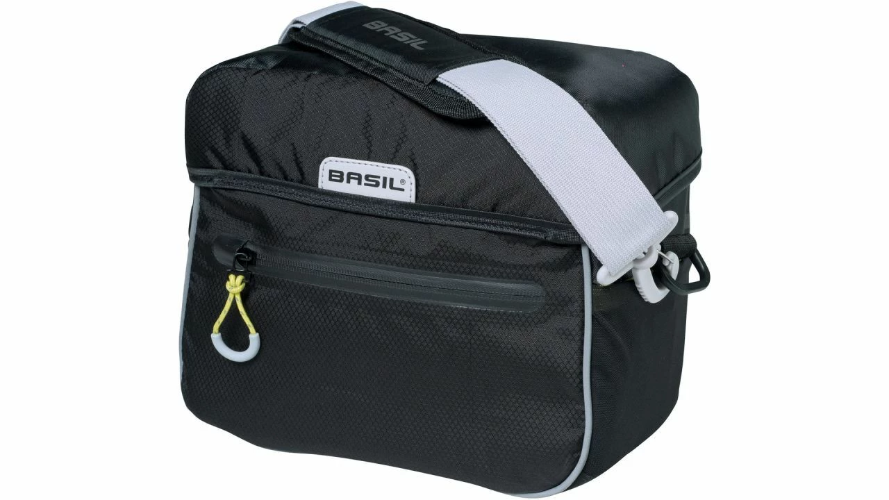 Bei der Miles von BASIL handelt es sich um eine praktische Lenkertasche, die sich leicht am Lenker eines Damen- oder Herrenfahrrads befestigen lässt. Die Tasche hat einen Gesamtinhalt von 6 l und ist daher ideal für die Aufbewahrung Ihrer wichtigsten Dinge. Zum Beispiel Ihr Smartphone, Ihr Portemonnaie, Ihr Hausschlüssel und eine Flasche Wasser. Auch ein Reifenreparatur-Set und eine Fahrradkarte lassen sich sicher verstauen.<br><br>Kompakt, aber dennoch praktisch. Und Sie haben alles in Reichweite. Die Lenkertasche verfügt über diverse Fächer, somit können Sie Ihre Sachen ordentlich sortieren. Darüber hinaus ist die Tasche mit einem Deckel mit Magnetverschluss ausgestattet. Die Tasche lässt sich leicht auf der Seite des Lenkers öffnen. <br>Die Miles ist aus wasserdichtem Material gefertigt, somit kann ein Regenschauer ohne Probleme kommen.<br><br>Sind Sie regelmäßig mit dem Fahrrad unterwegs? Dann ist diese Lenkertasche bestimmt etwas für Sie. Zudem verfügt die Miles über einen Handgriff und einen Schultergurt. Das ist sehr praktisch, wenn Sie die Tasche zum Beispiel mit in den Supermarkt nehmen wollen. Die Tasche lässt sich sowohl mit den BasEasy- als auch mit den Klickfix-Systemen kombinieren und somit am Lenker befestigen. Diese Systeme werden allerdings nicht bei dem Ankauf dieser Tasche mitgeliefert. Eine vormontierte BASIL BasEasy/Klickfix-Adapterplatte ist jedoch enthalten.