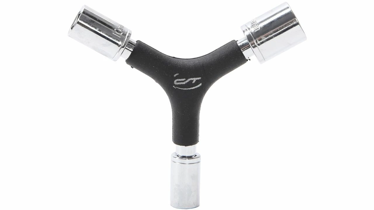 Mit wenigen Handgriffen Schrauben und Muttern bearbeiten: Der CONTEC Y-Steckschlüssel ist dafür ein klassischer Allrounder. Er kommt in praktischer Y-Form daher und bietet einen guten Griff, der eine schnelle und einfache Montage ermöglicht. Mit Öffnungen für 8, 10 und 13 mm ist das Einsatzfeld für dieses kleine Werkzeug groß. <br><br>Der Steckschlüssel besteht aus Kunststoff und Chrom Vanadium. Diese rostfreien Teile gewährleisten eine überzeugende Haltbarkeit. Ein leistungsstarkes Tool für schnelle Reparaturen am Fahrrad!