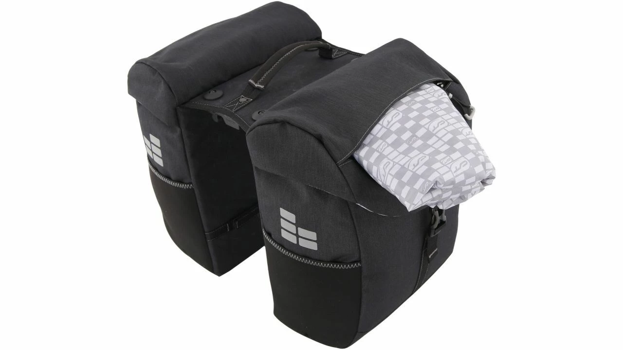Steht die lang ersehnte große Radtour oder der heiß geliebte sportliche Ausflug an, muss eine praktische Gepäckträger-Tasche mit möglichst viel Stauraum einfach dabei sein. Dabei soll die Tasche natürlich auf möglichst jedem Gepäckträger einsetzbar sein und sich der Fahrer damit wohl fühlen. Die NeoSport.Double Tasche- bietet genau das – und noch mehr. Sie ist mit ihrer eleganten Form perfekt für sportliche Fahrten geeignet. <br><br>Durch den Racktime Snap-it-Adapter ist die Tasche flexibel einsetzbar. Ein dehnbares Einschubfach sorgt dafür, dass kleinere Gegenstände schnell zur Hand sind. Der größte Vorteil der Doppeltasche besteht aber aus ihrem unfassbar großen Volumen: Beide Einzeltaschen bieten zusammen genommen Platz für 30 l Stauraum. Ein wahres Plus bei langen Touren. Da die Tasche aus wasserabweisendem Polyester besteht und über eine integrierte Regenschutzhaube verfügt, sind auch längere Regenfahrten kein Problem.<br><br>Kleiner Bonus: Mit den reflektierenden Elementen der Tasche ist der Fahrer immer gut zu sehen.