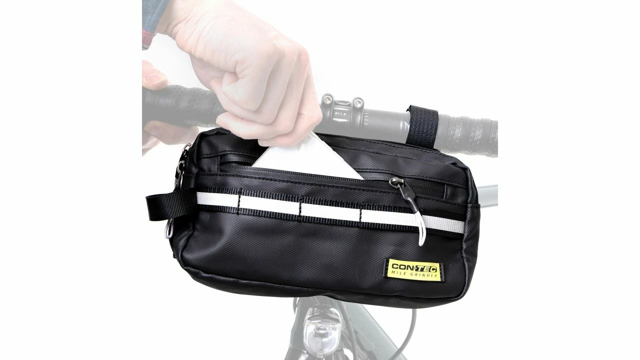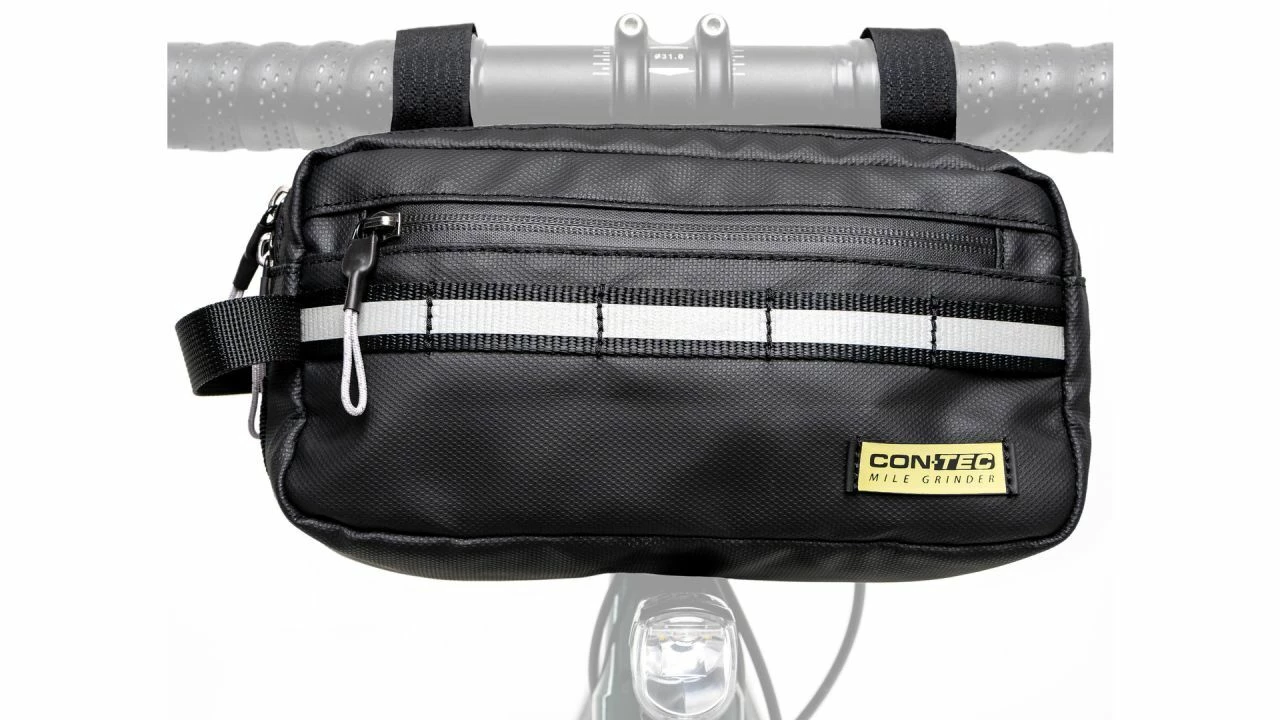 Klug gedacht, cool gemacht – das ist CONTECs Mile Grinder Race 3. Die schwarze Lenkertasche aus wasserdichtem Polyester ist ein zeitloser Klassiker in Sachen Design und punktet dazu mit einer kinderleichten Handhabung sowie smarten Features. Mit einem Volumen von 3 Litern eignet sie sich sowohl zur Mitnahme von Reisegepäck beim Bikepacken oder einfach im Alltag an deinem City-Graveler oder Rennrad.<br><br>Das Innenleben der Lenkertasche ist in verschiedene Fächer aufgeteilt. Ein kleines Fach mit Fleece ist bestens geeignet, um dein Smartphone oder eine Sonnenbrille mitzunehmen. Im großen Hauptfach ist Platz für alles andere wie Reisegepäck, dein Portemonnaie oder eine Kamera. Flexible Mesh-Netze bieten Platz, um ein Multitool oder Energieriegel zu fixieren.<br><br>Befestigt wird die Tasche ohne Werkzeug mittels kratzfreier Klettriemen am Lenker deines Bikes. Zusätzliche Schlaufen an der Taschen-Front bieten dir die Möglichkeit noch weiteres Zubehör wie Regenkleidung dort zu fixieren. Aber auch weitere Taschen kannst du an den Schlaufen befestigen (MOLLE-System). Machst du auf deinen Touren Halt bei einem Supermarkt oder einem Café, kannst du die Mile Grinder Race 3 einfach abmachen und mit dem Trageriemen sowohl zu einer Hüfttasche als auch einer Schultertasche umfunktionieren, und mit ins Geschäft oder Lokal nehmen.