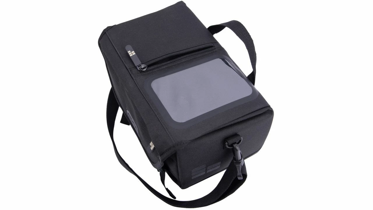 Nord, Ost, Süd oder West: immer auf dem richtigen Weg mit der CONTEC Lenkertasche VIA.FRONT. Neben Unikaten von einem französischen Markt oder Kleinigkeiten aus dem Supermarkt findet das Smartphone einen ganz besonderen Platz in dieser Lenkertasche. <br><br>Zum Erleichterten Bedienen und Navigieren sitzt das Handy-Fach oben auf der Tasche. Das Handy kann somit von unterwegs bedient werden. Eine durchsichtige Folie sorgt für den richtigen Smartphone-Schutz. Die abgeschrägte Position der wasserabweisenden Tasche verhindert zudem, dass Sonnenstrahlen die Sicht auf das Display behindern. <br><br>Mit 7,5 Liter Fassungsvermögen bietet die Tasche genügend Stauraum, um zusätzlich eine Powerbank einzustecken. So kann die akkuzehrende Navigationsapp dem Handy nicht den Garaus machen. Das Aufladekabel zieht man einfach durch ein kleines Loch im Tascheninneren und verbindet beide Teile miteinander. <br><br>Auch unabhängig kann die Lenkertasche genutzt werden. Mit dem verstellbaren Trageriemen lässt sie sich einfach schultern und auf den persönlichen Tragekomfort anpassen. Am Fahrrad wird die Tasche über eine vormontierte KlickFix-Befestigungsplatte montiert.<br><br>Nie mehr orientierungslos mit leerem Handyakku mit der CONTEC Lenkertasche VIA.FRONT steht dem nächsten Fahrradausflug zu neuen Zielen nichts mehr im Wege