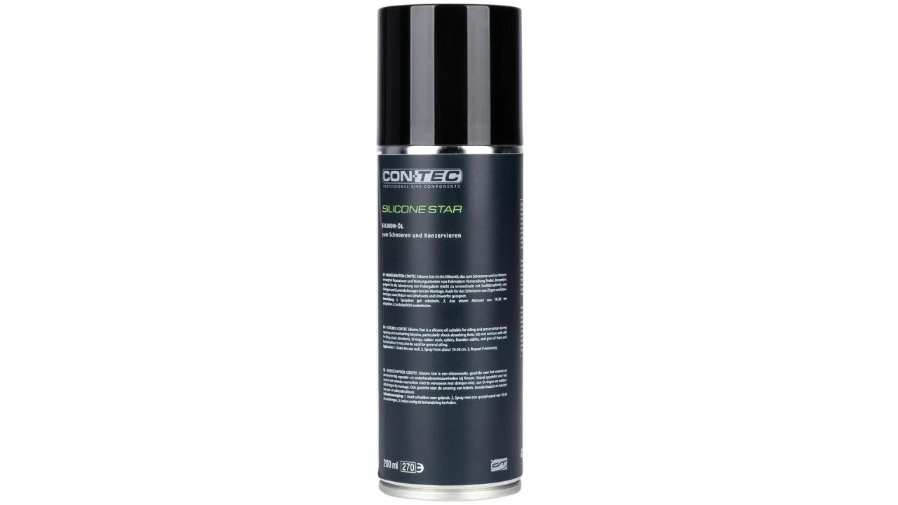 Das Schmieren des Fahrrads ist essenziell. Das CONTEC Silikonspray Silicone Star schmiert und konserviert bei Wartungen und Reparaturen problemlos. Es wird insbesondere für den Gang von Federgabeln eingesetzt. <br><br>Das Spray schmiert Gummidichtungen und O-Ringe bei der Reparatur und ser Montage sowie Züge und Bolzen von Schaltwerk- und Kettenwerfer-Komponenten. Das alles gelingt schnell und effizient. <br>CONTEC Silicone Star ist in einer 200-ml-Spraydose erhältlich.