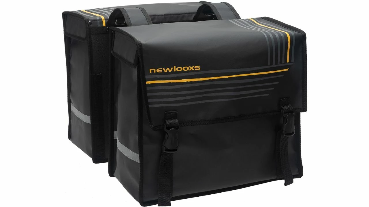 Die Bisonyl Basic ist eine solide Doppeltasche zur Befestigung am Gepäckträger deines Fahrrads. NEW LOOXS fertigt sie ist aus stabilem, wasserabweisendem Bisonyl – einem Kunststoff-Element -, was die Tasche besonders robust macht. Dadurch und aufgrund ihres hohen Volumens von 46 l ist sie besonders gut für längere Touren, aber auch zum Bewältigen der alltäglichen Einkäufe geeignet. Reflektierende Elemente machen einen im Straßenverkehr sichtbarer – vor allem in der Dämmerung oder gar im Dunkeln.