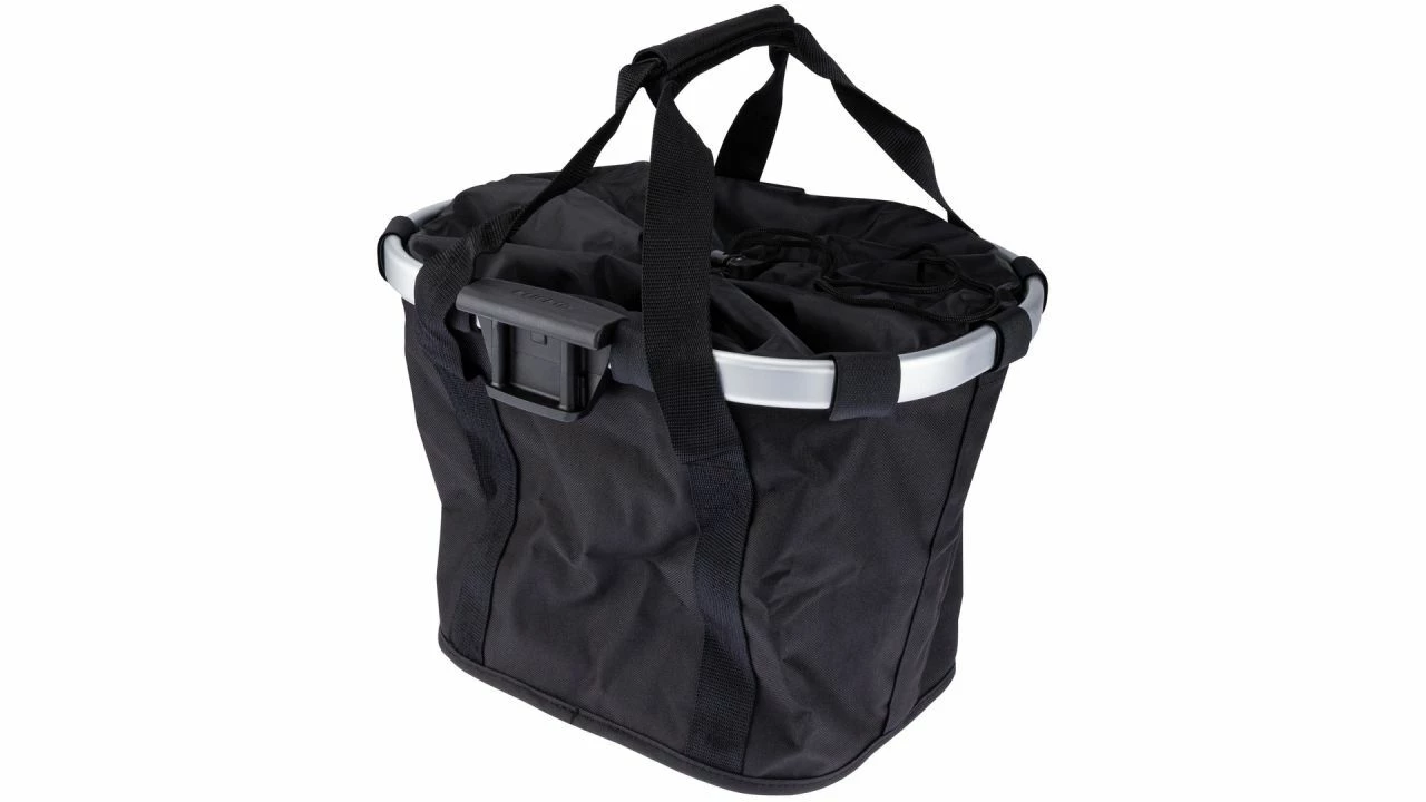 Ergebnis der Kooperation zweier starker Marken: Die schicke Textiltasche von Reisenthel sieht sich mit dem markanten Aluminiumrahmen zum Anklicken am KLICKFIX-Lenkeradapter kombiniert. Auch ohne Fahrrad glänzt der Bikebasket als flotter Begleiter in der City, gegen den so manche Handtasche keine Chance hat. <br><br>Der Fahrradkorb ist mit einer Front- und Innentasche, einem Handyfach, einem Kordelverschluss und einer abnehmbaren Tasche für Kleinigkeiten ausgestattet. Erhältlich ist er in verschiedenen frischen Dekoren aus strapazierfähigem Polyester. Belastbar ist die Lenkertasche bis max. 5 kg.