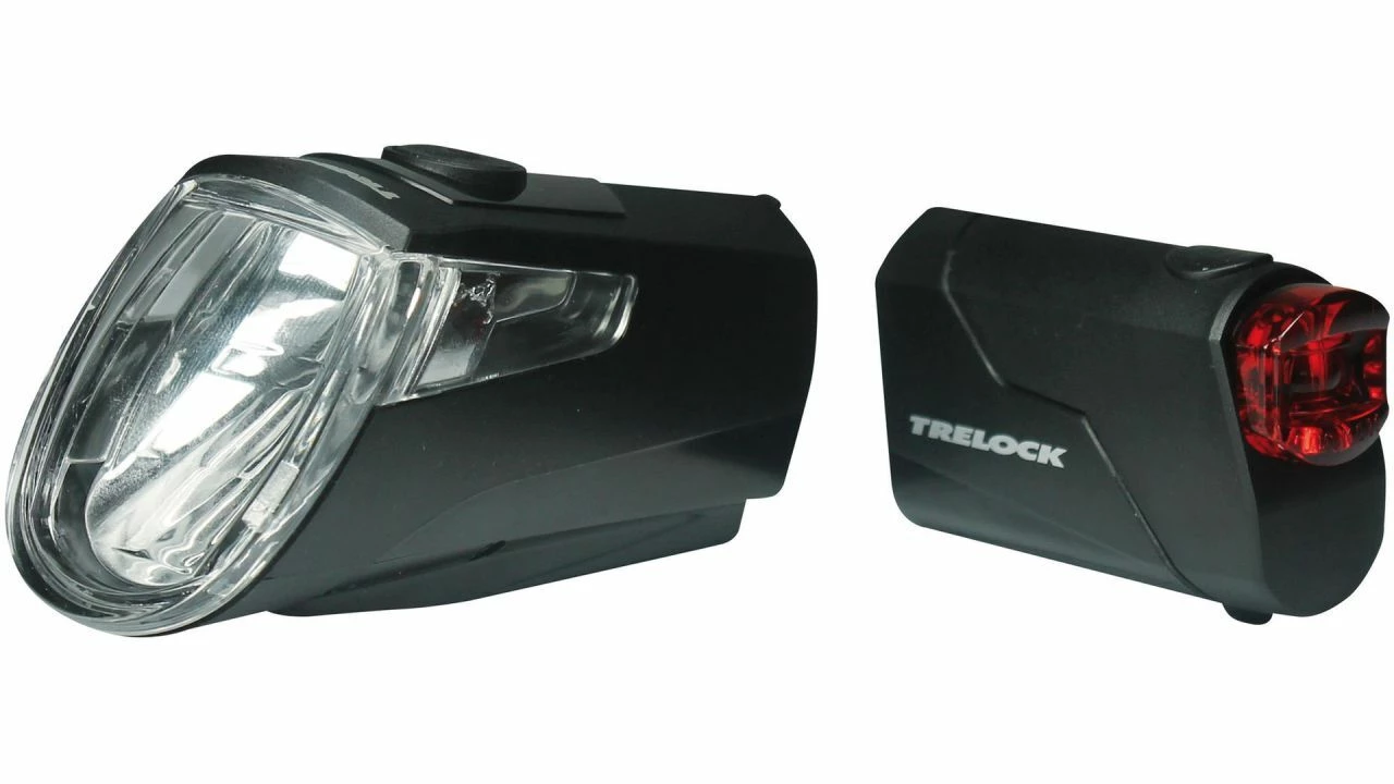 Der Akku-LED-Scheinwerfer I-Go Eco von TRELOCK leuchtet vom Lenker aus die Fahrbahn vor dem Fahrrad mit 25 Lux gut aus. Die Leuchtdauer beträgt bis zu 8 Stunden. Beim Reego LED-Rücklicht beträgt die Leuchtdauer 10 Stunden. Er wird mit dem Halter einfach an die Sattelstütze geschraubt, dann dient er als Signalleuchte im Straßenverkehr. Scheinwerfer und Rücklicht verfügen über eine Ladestandsanzeiger und lassen sich über die USB-Ladebuchse einfach aufladen.