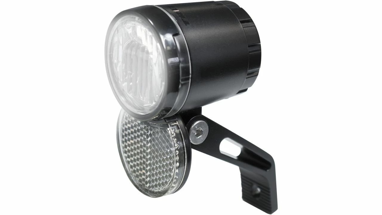 Der Bike-i Veo LS 282 LED-Scheinwerfer von TRELOCK leuchtet mit seinen 20 Lux die Fahrbahn hell aus. Die seitliche Beleuchtung erhöht zusätzlich das Gesehenwerden im Straßenverkehr. Insgesamt beträgt die Sichtbarkeit bis zu 2.500 m. <br>Nach StVZO gesetztlich freigegeben. Für Nabendynamo-Betrieb, mit integriertem Rückstrahler und inklusive dem Halter. Das Modell LS 233 hat zusätzlich ein Standlicht.